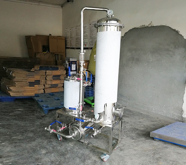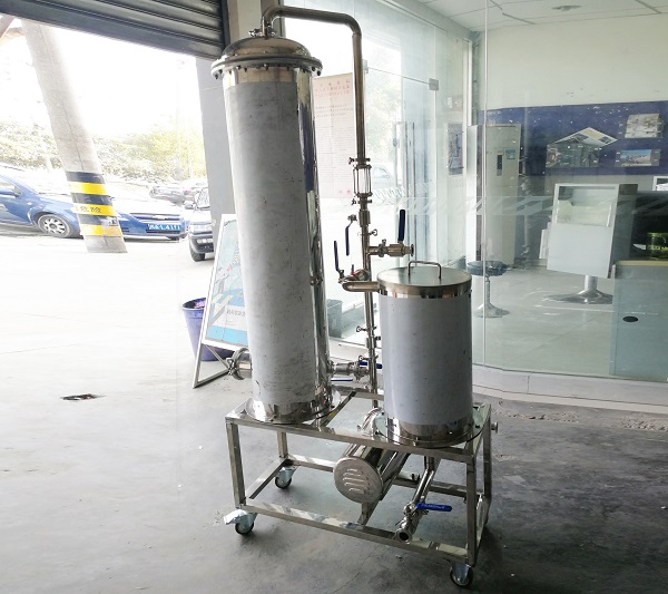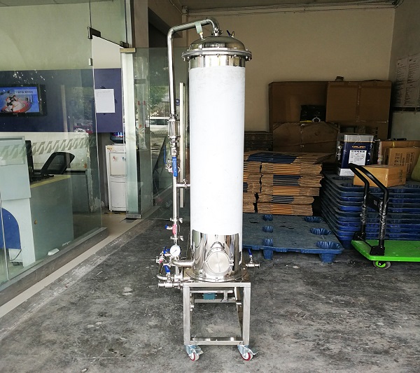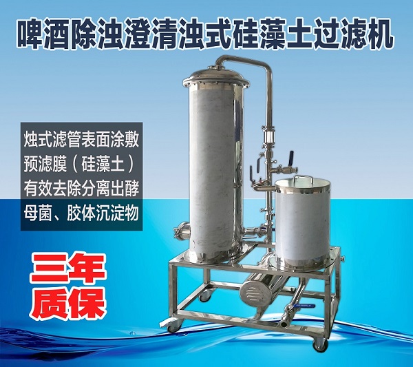 燭式過濾機是一種新型的過濾機。采取在燭式濾管表面涂敷預濾膜(硅藻土)和在過濾機內加壓進行的方式,具有較高的分離精度、能從啤酒中分離出酵母菌、膠體沉淀物,生產出清澈透明的啤酒。